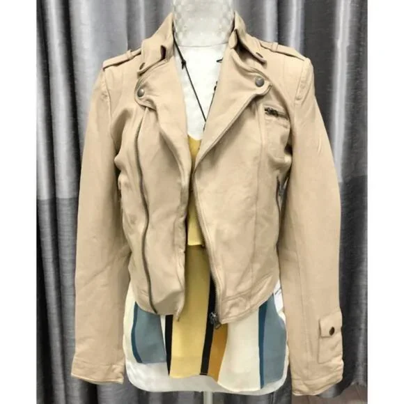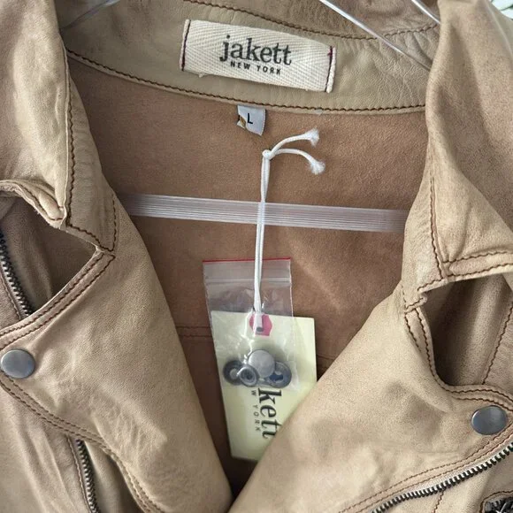 Tough and sweet.A cropped leather moto jacket featuring an asymmetric zip front closure, shoulder epaulets, and snapped cuffs. Pair with wide trousers and smart heels to show them who’s really boss.Be the main character in an effortless leather jacket from Jakett. Crafted for the woman who exudes comfort and confidence as she shapes her legacy of style. MATERIAL: 100% Leather. Unlined for softness.FIT NOTES: Cropped, slim fit.. If in doubt, we recommend sizing up.